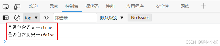includes() 判断数组是否包含特定字符串,存在返回true,不存在返回false。