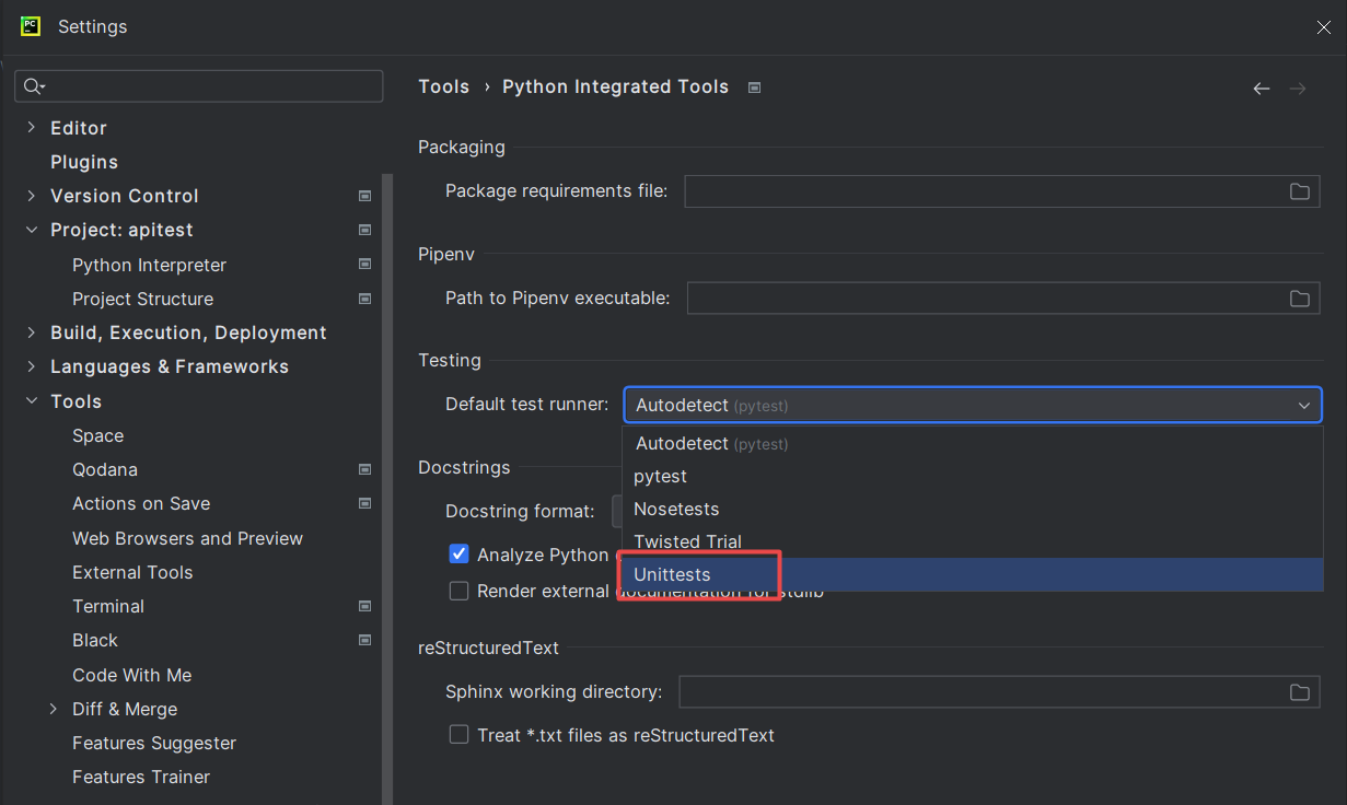 我之前默认的是Autodect 重新选择了Unittests后运行正常