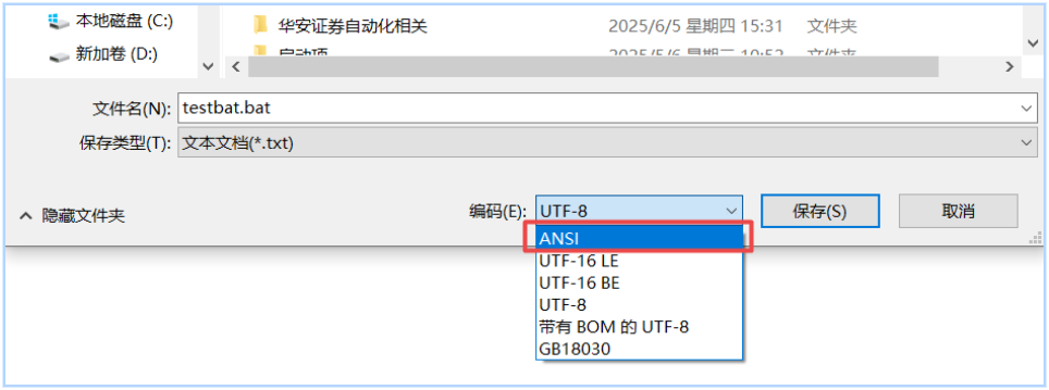 原因是因为cmd文件对utf-8编码集支持不好,需要修改文件的编码集即可。
