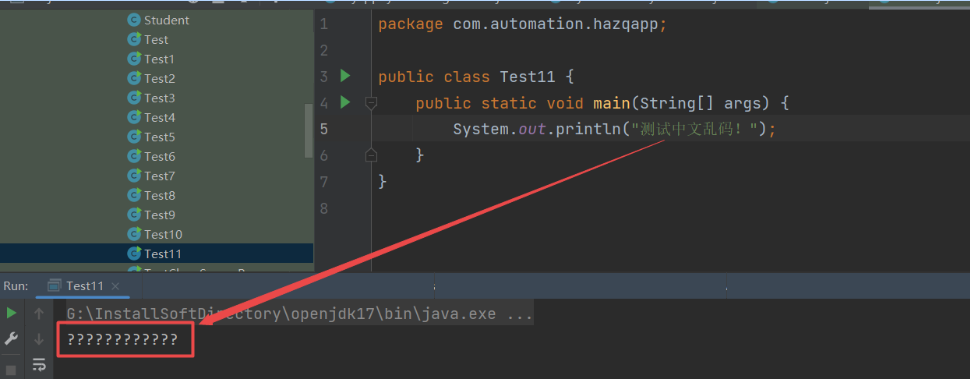 从图中可以看出,中文展示为乱码,但是输出乱码了。