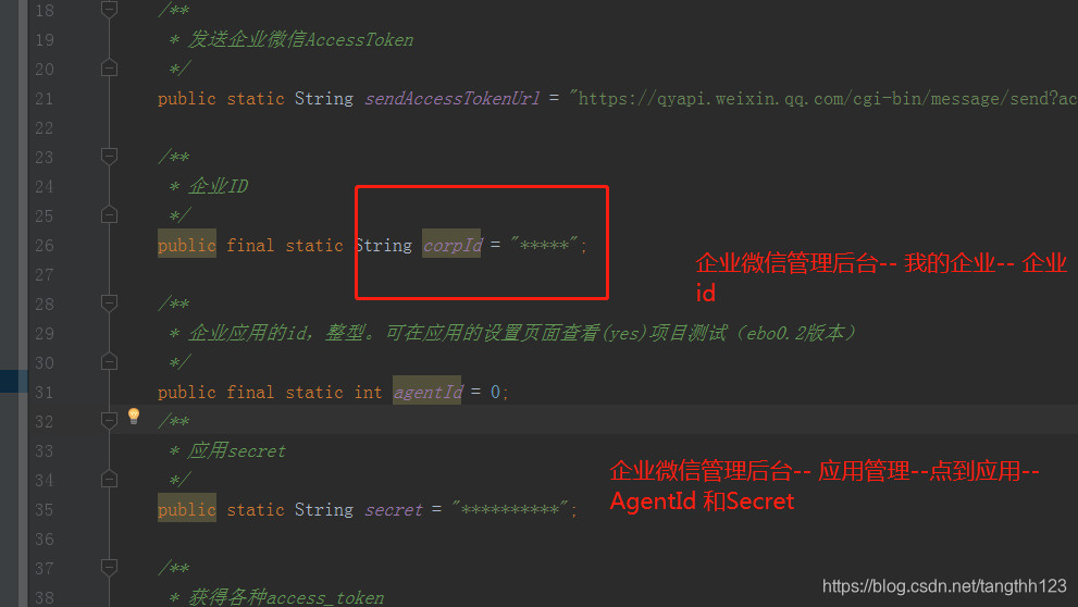 corpId ,agentId Secret这三个参数都需替换
