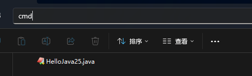 启动命令行,切换到存储Java文件的目录,最简单的做法就是,在当前目录的地址栏输入cmd,然后回车即可:
