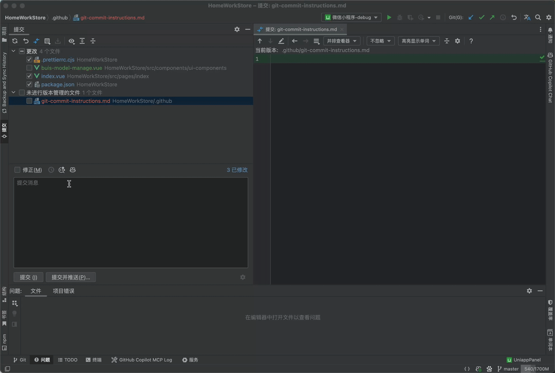 - 在打开的git-commit-instructions.md 复制上面的提示语