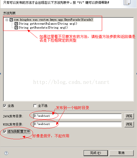 1、发布成WebService的方法,其方法参数和返回值类型必须是下列列表中的类型,否则发布时看不见方法。是否可以添加异常未尝试。