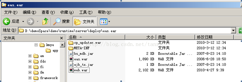 2、把解决方案下改好的runtime\server\deploy\eas.ear\web.war文件拷贝到EAS服务器的server\deploy\eas.ear目录中,重启EAS服务器