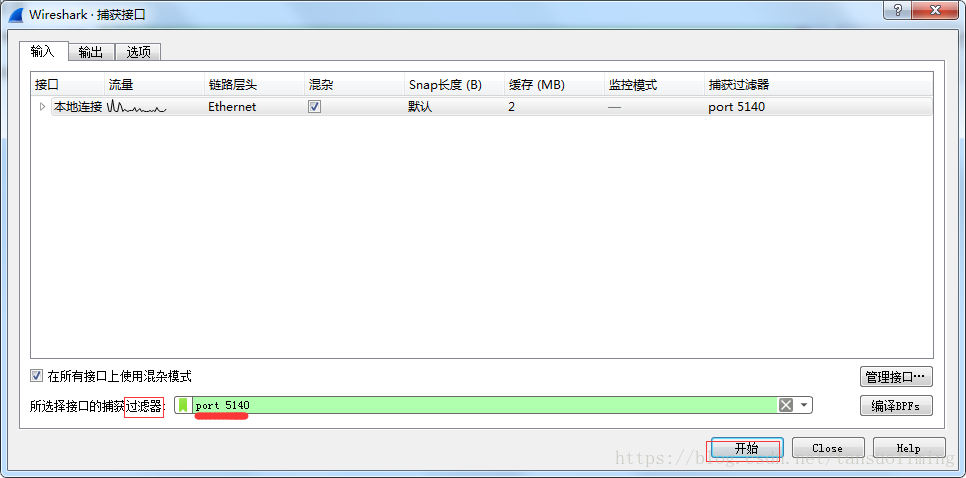 填好过滤器后点击“开始”进行捕获