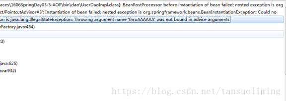 4.aop:after-throwing 异常通知当执行目标方法之后抛出异常才执行异常通知。