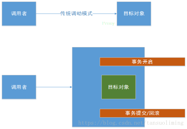实现了代码的分离。让业务层代码只处理业务。事务代码只处理事务,两者松耦合。