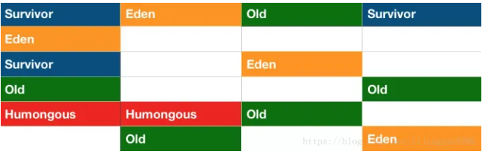 - Humongous regions(巨型对象区域) 占用了Region容量的50%以上对象 巨型对象比较大 一般在并发标记阶段如果可以回收就直接回收了。