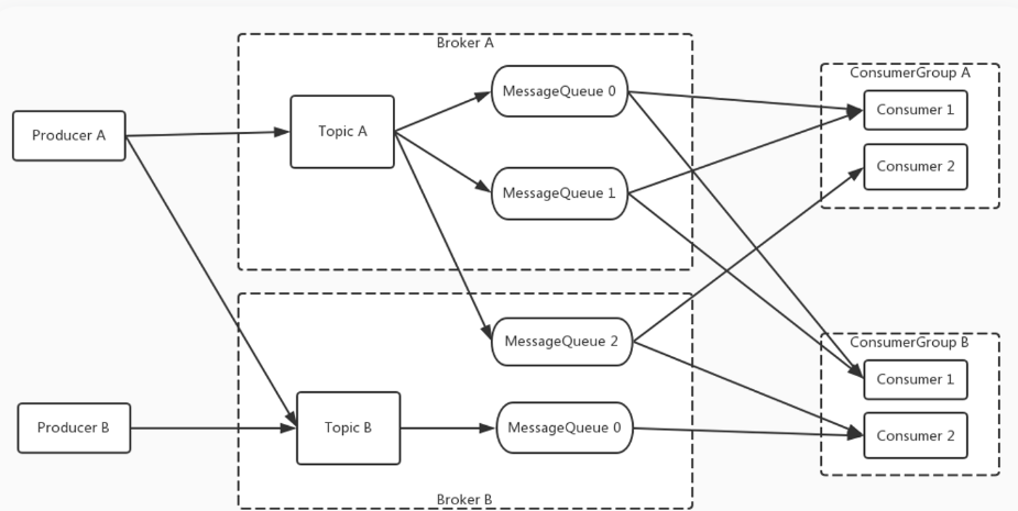 一个topic可以有多个队列 而且还可以在不同的物理机器,这就为高吞吐、水平扩展支持打了基础。