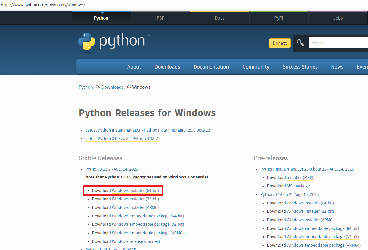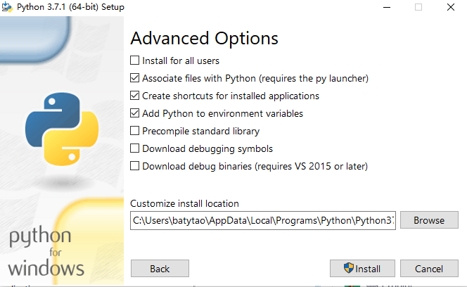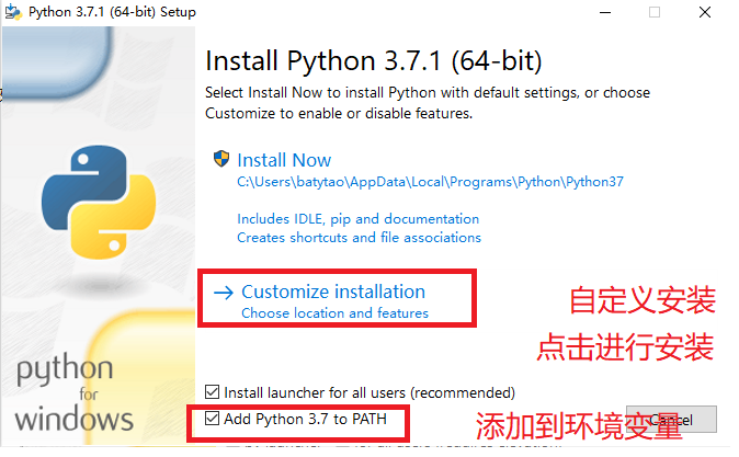 下载地址:https://www.python.org/downloads/windows/ (python-3.7.1-amd64.exe)