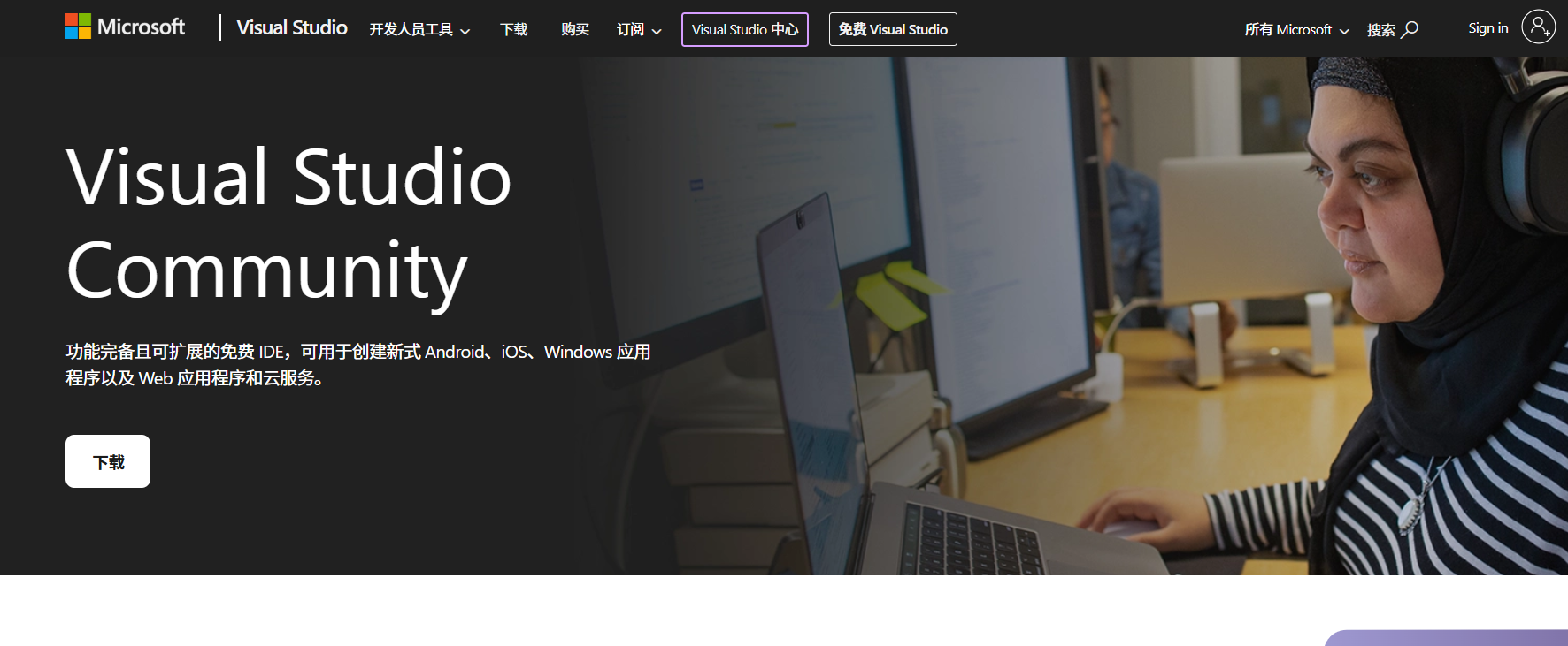 官方社区版下载网址:https://visualstudio.microsoft.com/zh-hans/vs/community/