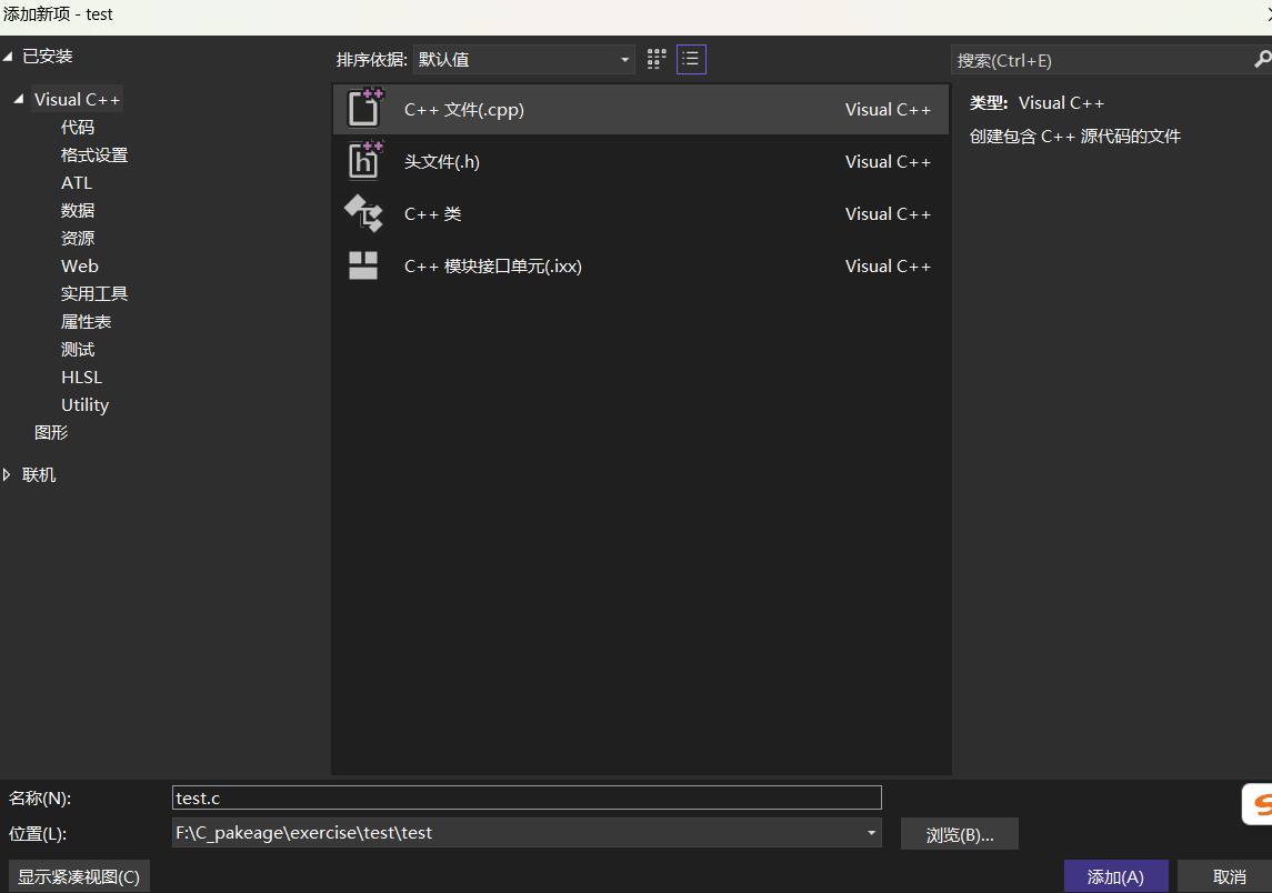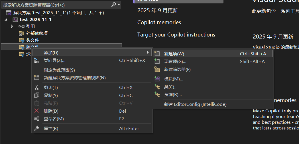 ⑨点击源文件里面的添加——新建项(我们存放源代码的地方)