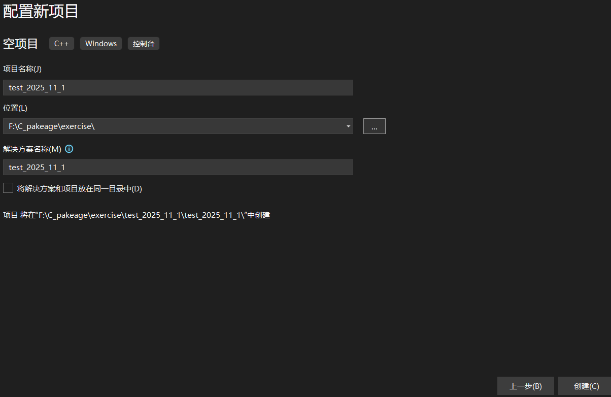 ⑦在这里输入你的项目名称和文件路径并点击创建