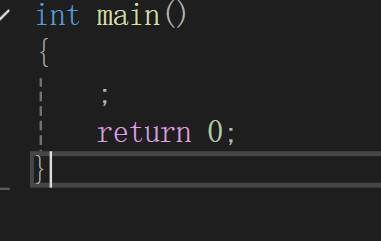 接下来,我们需要知道用花括号表示我们想要计算机执行哪些内容,最基本的就是让他结束代码,在c语言中我们用return 0来告诉计算机我代码就到这里了,还需要知道我们在花括号里面的每一个语言都要加;因为;是我们每一个语句结束的标志,没有它计算机不知道我们这个语句要结束,由此,我们就得到了
