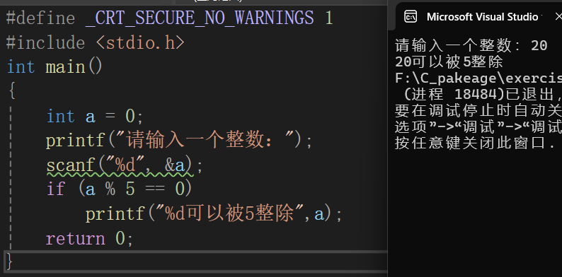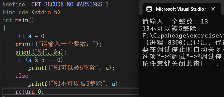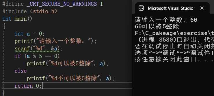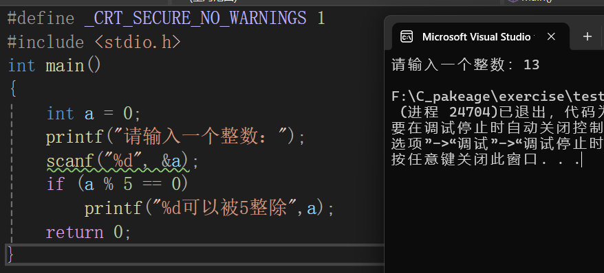 看了上面的代码,我们不禁产生了一个疑惑,那我要是想输出a不能被5整除该怎么办,这里我们就引入了else。