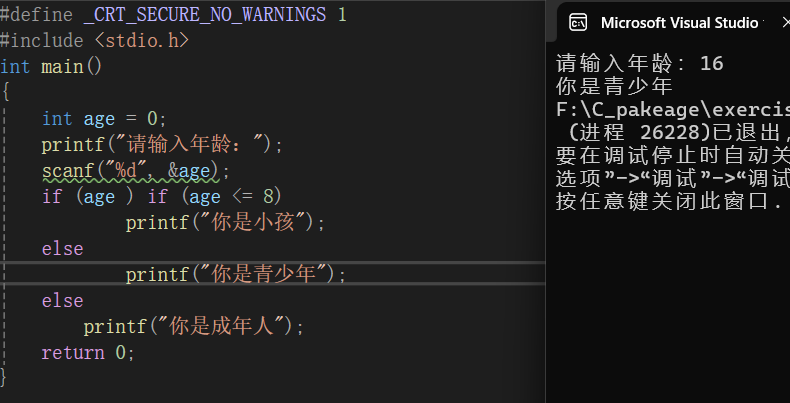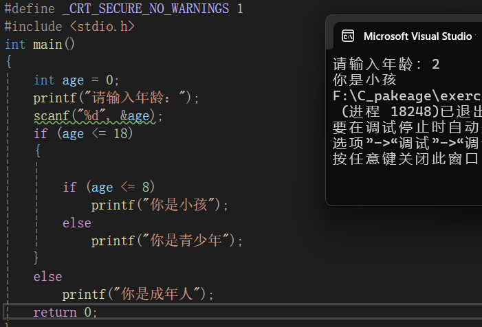 比如我们要做一个小练习,0-8岁的是小孩,9到18岁的是青少年,18岁以上的是成年人,这时我们的if...else...最多判断两个,第三个我们怎么判断呢,答案是用if的嵌套,你只需要在花括号里面再加上if...else...就行