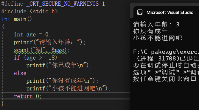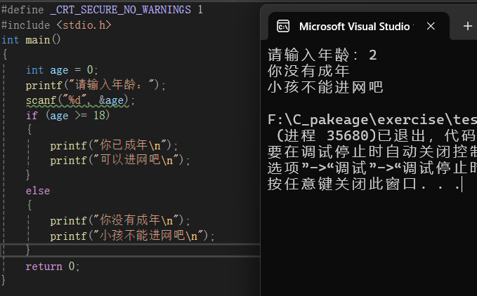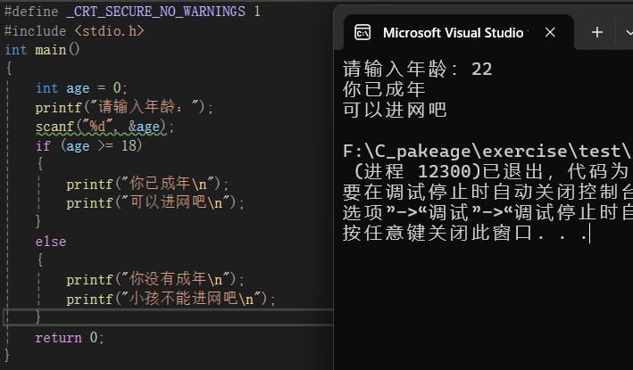 计算机判断如果为真(表达式成立)则执行if后面的语句,如果为假(表达式不成立),则if后面的语句不执行,我们用下面的代码来对比一下,相信你一看就能理解。