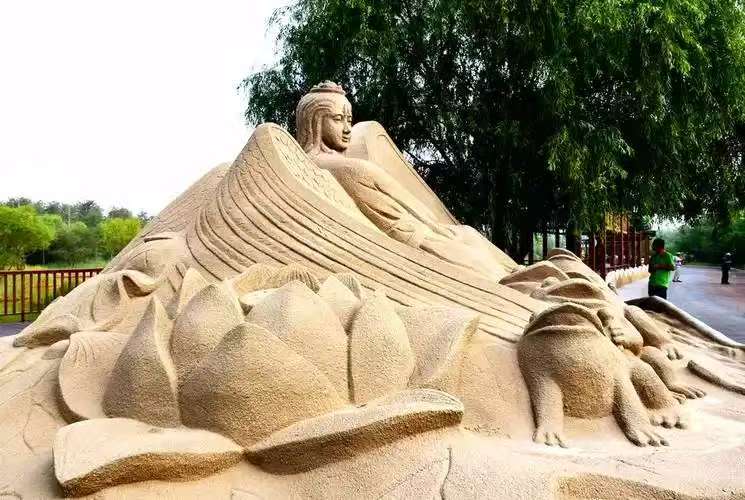 沙雕艺术是该景区的一大亮点。37 米高的沙雕弥勒大佛宏伟壮观,占地 3000 多平方米的沙雕迷宫精巧复杂,各 50 米长的巨型沙雕双鱼带来巨大的视觉震撼,还有渤海边宁静庄严的观音菩萨像等,每一件沙雕作品都堪称艺术珍品,让人仿佛置身于沙雕艺术的殿堂。