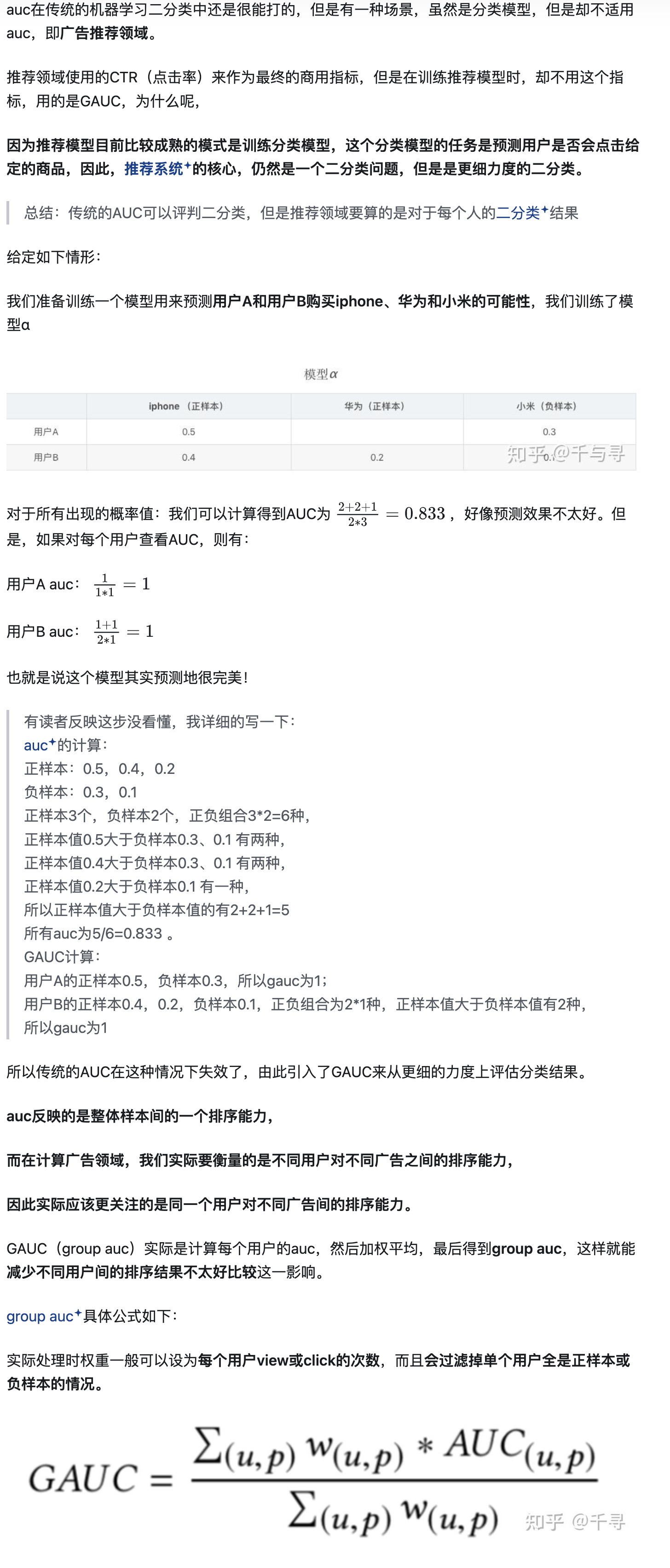 等价于:将正、负样本两两相遇形成正负样本对,其中正样本预测分大于负样本的样本对的占比。
