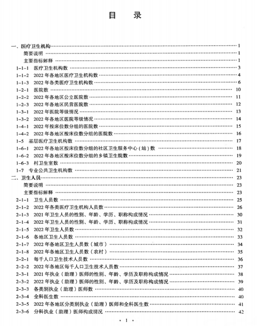 01、数据简介《中国卫生健康统计年鉴2023》全面系统地总结了中国在2022年卫生健康事业发展的重点工作和主要成就,并汇集了从医疗资源投入、疾病预防控制、就医情况到群众健康水平的最新数据。收录了全国各省、自治区、直辖市具体卫生情况和居民健康情况的统计性数据。数据名称:中国卫生健康统计年鉴数据年份:2023年数据格式:PDF02、相关数据医疗卫生机构、卫生人员、卫生设施 、卫生经费、医疗服务 、基层医疗卫生服务、中医药服务、妇幼保健 、人民健康水平、疾病控制与公共卫生、居民病伤死亡原因、食品安全与卫生健康监督、医疗保障 、人口指标。03、