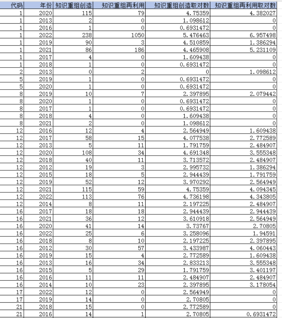 上市公司-知识重组创造、知识重组再利用数据(2012-2023年)