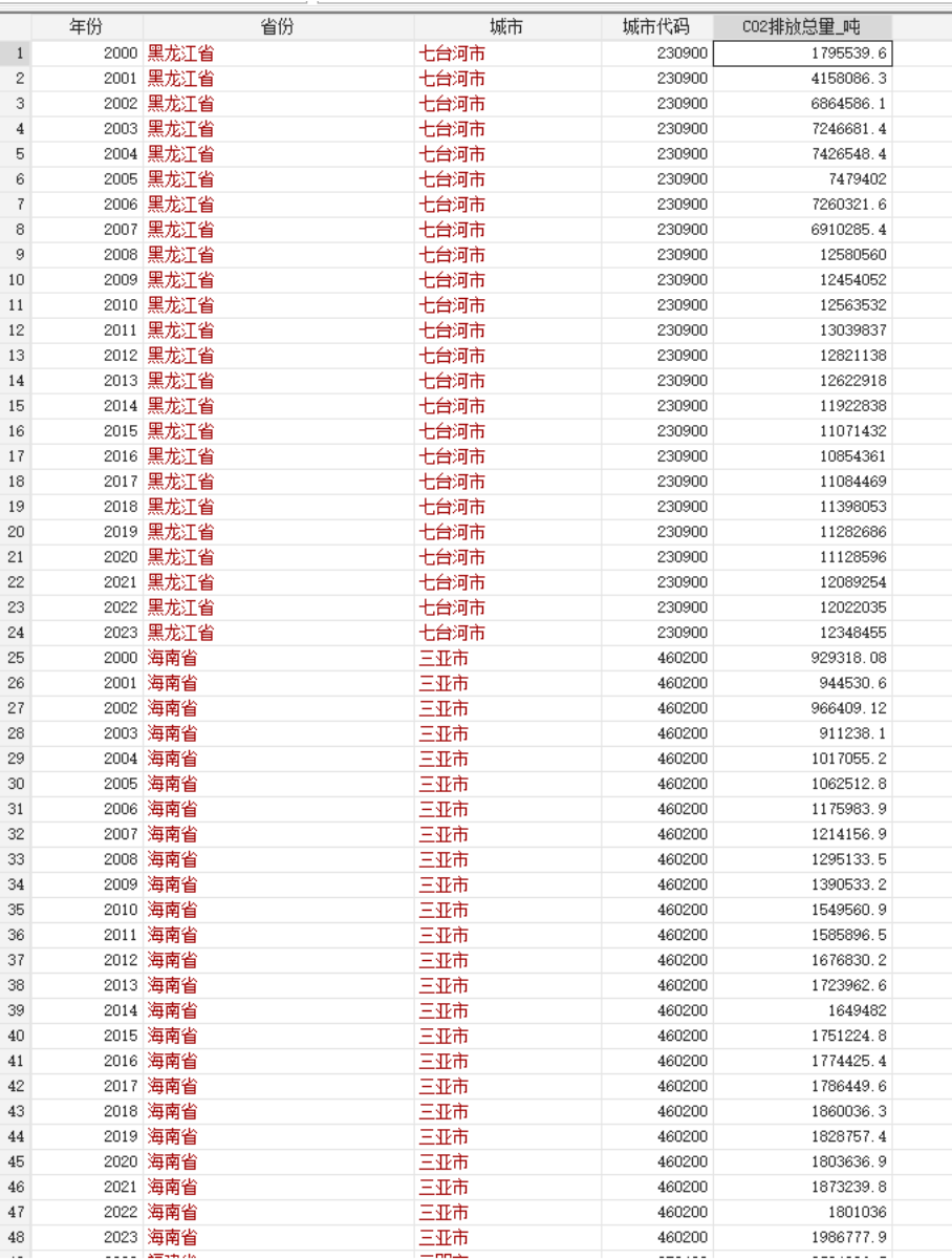 01、数据简介地级市碳排放总量是指某一地级市在单位时间内(通常是一年)的二氧化碳排放总量。这一指标衡量了该地级市在一定时期内由各种人类活动(如化石能源消耗、工业生产、交通运输等)所产生的温室气体排放量,特别是二氧化碳的排放量。地级市碳排放总量的计算对于评估该地区的碳排放水平、制定减排政策、推动绿色低碳发展具有重要意义。通过对比不同地级市的碳排放总量,可以了解各地区在碳排放方面的差异和趋势,为制定差异化的减排政策提供依据。同时,地级市碳排放总量的控制也是实现国家整体碳排放目标的关键环节之一。数据名称:地级市-碳排放数据数据年份:2000-2023年02、相关数据年份、省份、地级市、地级市代码、所属地域、胡焕庸线、CO2排放总量(吨)03、