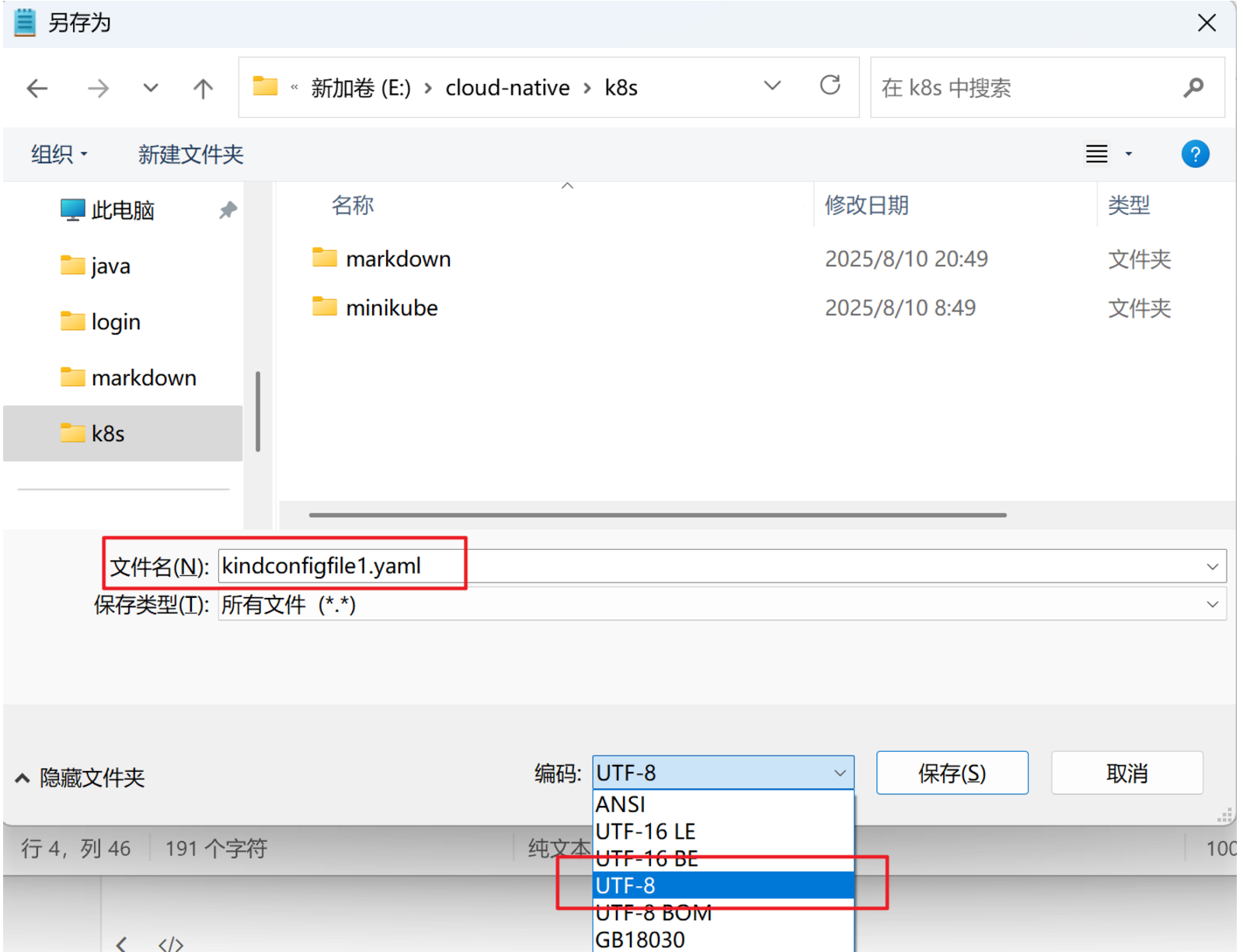 使用记事本编写,默认保存为 UTF-8 with BOM,可能导致 Kind 无法识别,只需要在保存文件的时候选择“另存为” → 编码选择