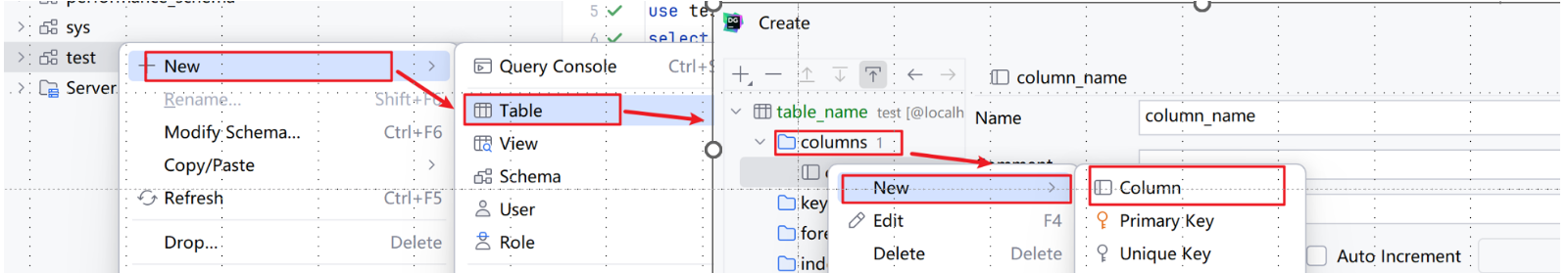 除了使用以上命令行方式创建,还可以通过图形化界面创建表、列等等