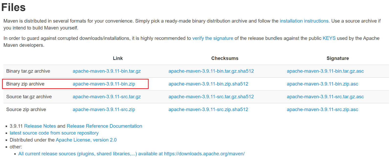 下载前往https://maven.apache.org/download.cgi直接下载压缩包即可,以win11为例