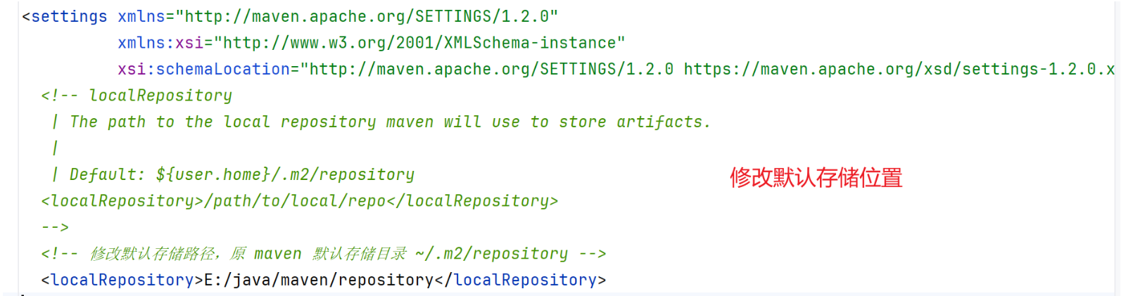 原maven默认存储目录~/.m2/repository,现修改为E:\java\maven\repository