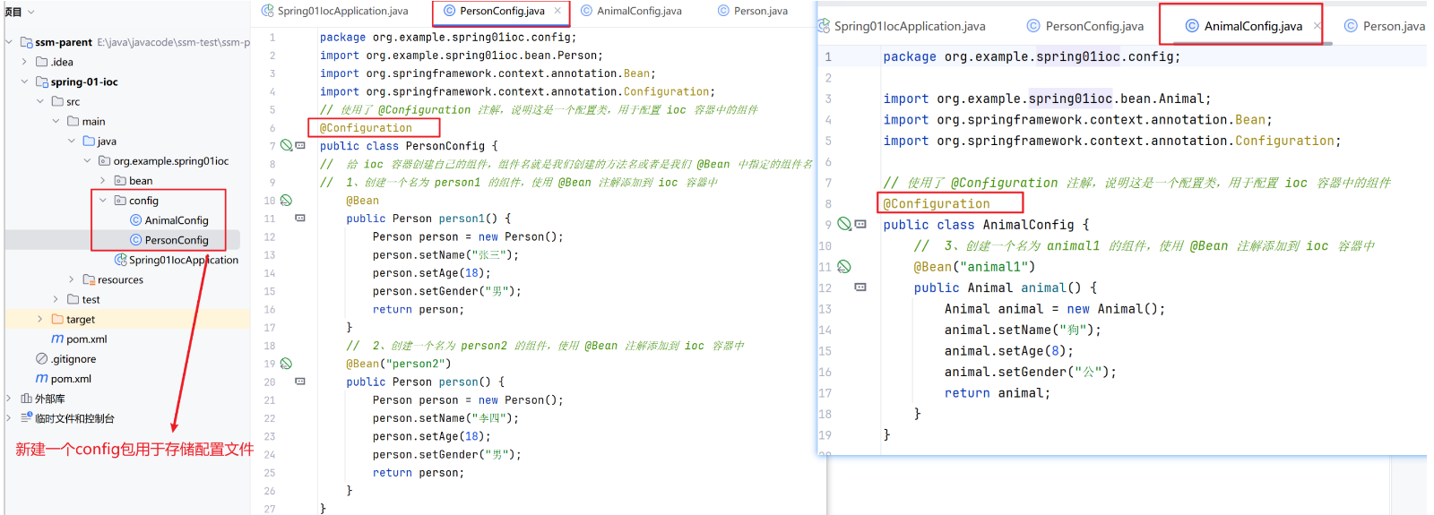 // 给 ioc 容器创建自己的组件,组件名就是我们创建的方法名或者是我们 @Bean 中指定的组件名