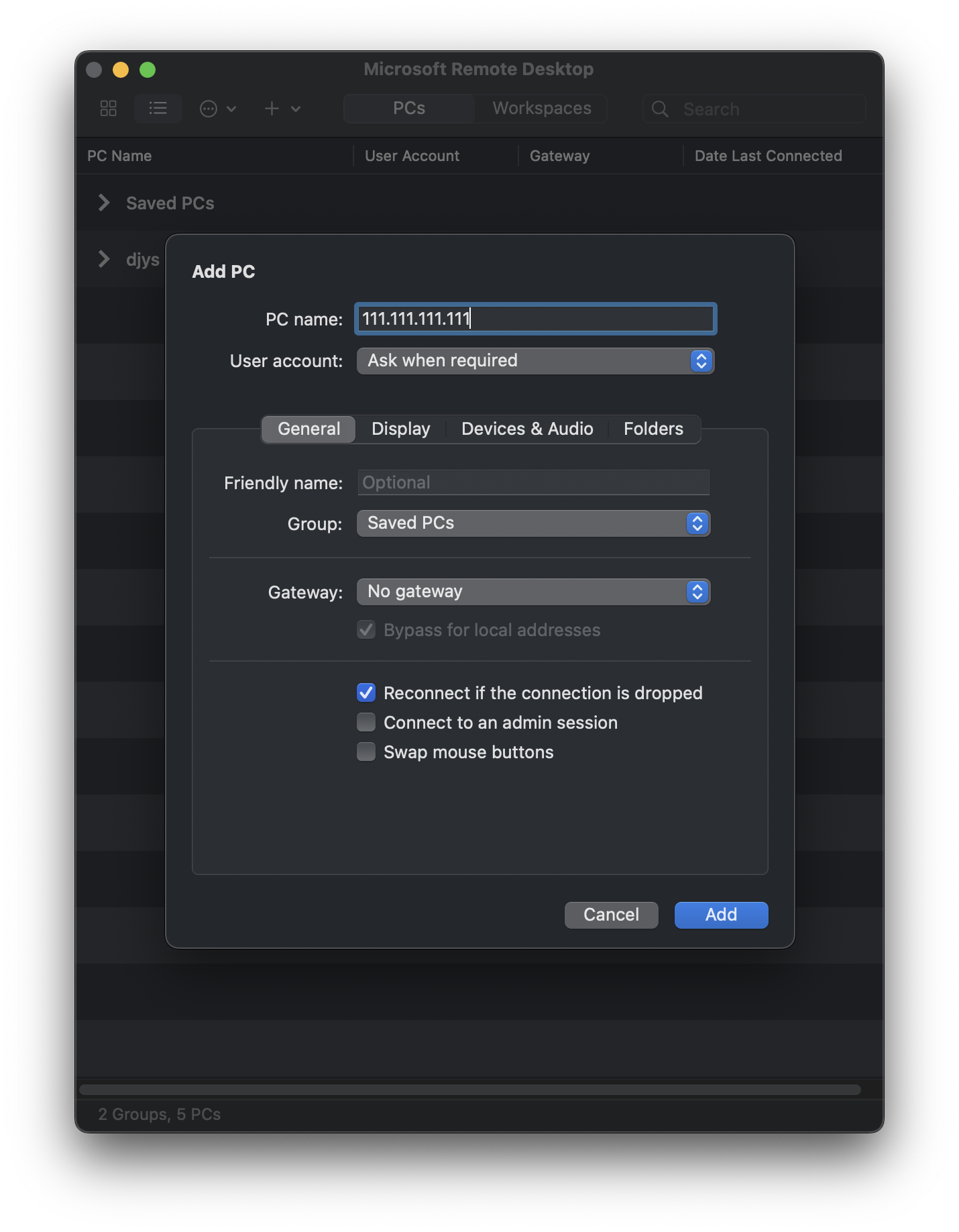 3、在弹出的Add PC对话框中输入堡垒机的IP地址。