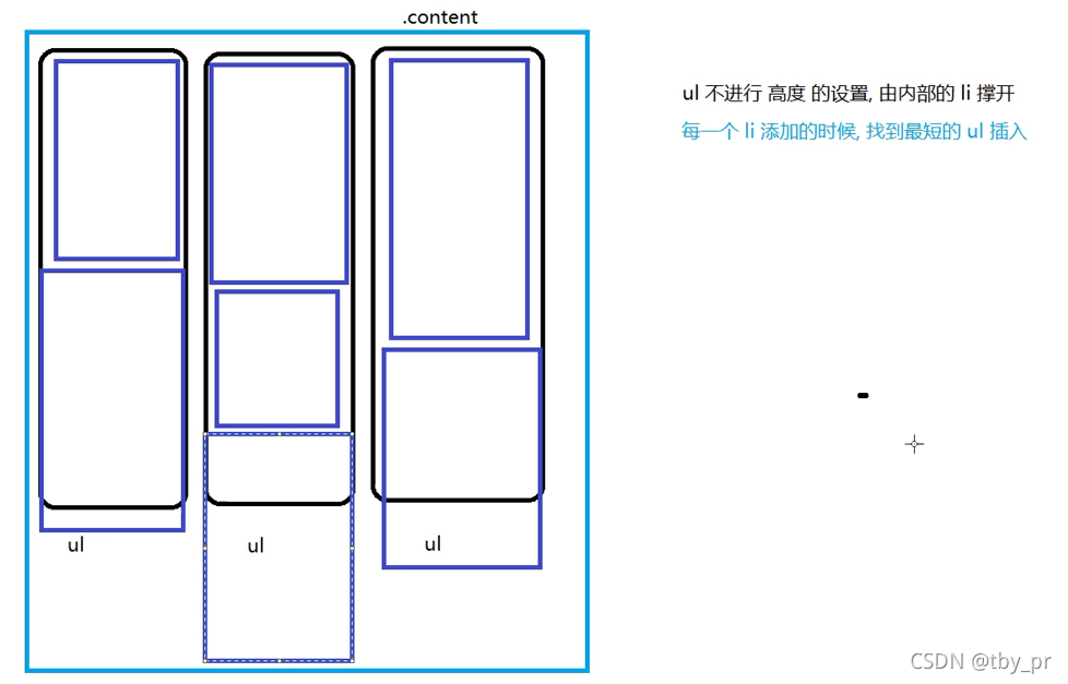不等高瀑布流,ul不能设置高度,高度靠每个ul内的li撑开,