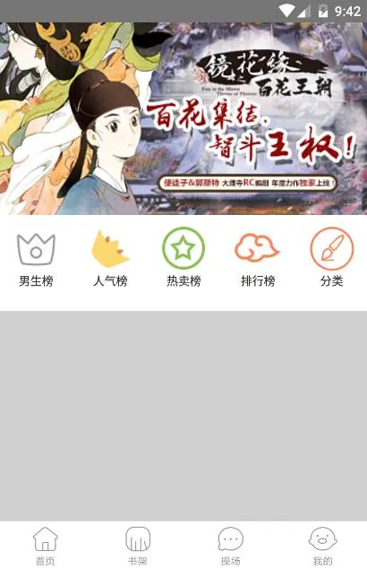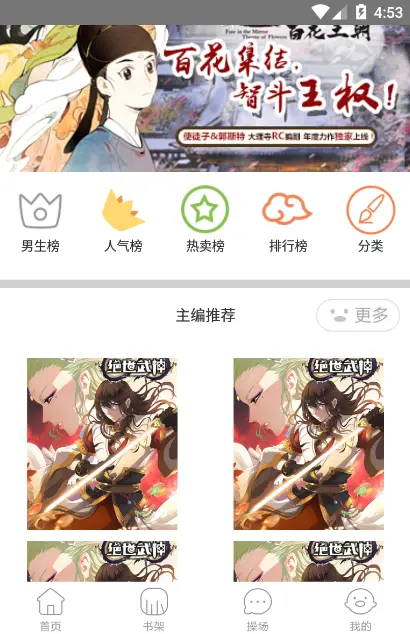 初看上去界面有点复杂,其实都是由一层层简单的布局嵌套之后形成的,将它们一层层拨开,你心里可能会想也就那么回事。下面来带领大家一步步构建出这样的一个漫画App首页的布局效果。
