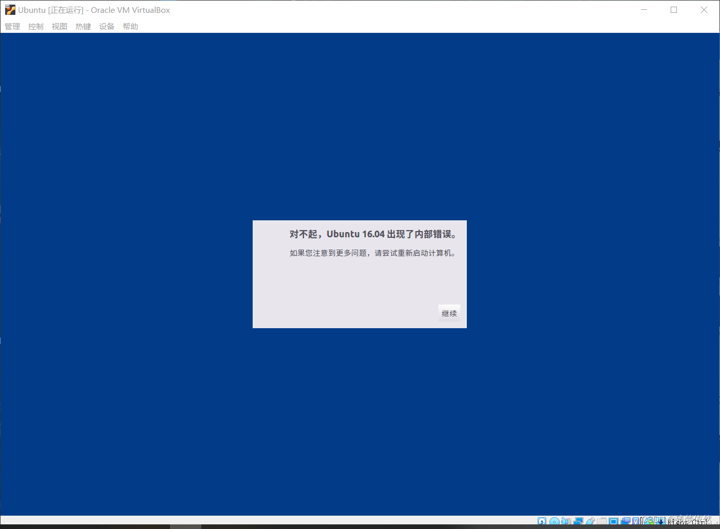 在使用Ubuntu时,电脑部分卡死,用任务管理器,关闭Ubuntu后,再次重启,出现以下情况