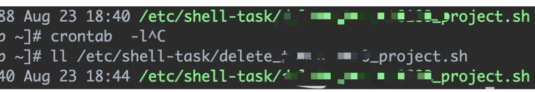 于是通过Linux的crontab命令查看是否有定时任务在执行,执行crontab -e或crontab -l,还真看到有三个定时任务在执行。跟踪到定时任务执行的脚本中,而且明目张胆的起名deleteXXX: