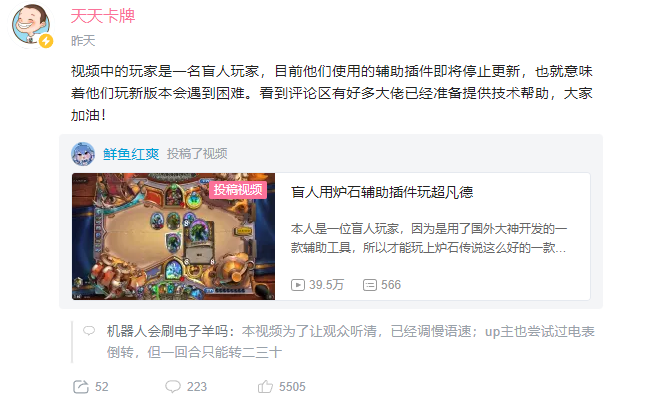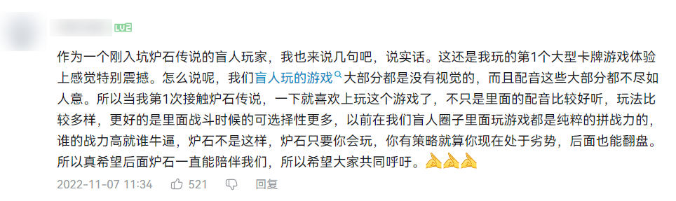 因为《 炉石传说 》中,确实有不少盲人玩家。