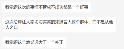 比如群里的视障玩家:暗密、天黑请闭眼、少侠、梦寻、小恶魔等人,都跟小发聊了不少。