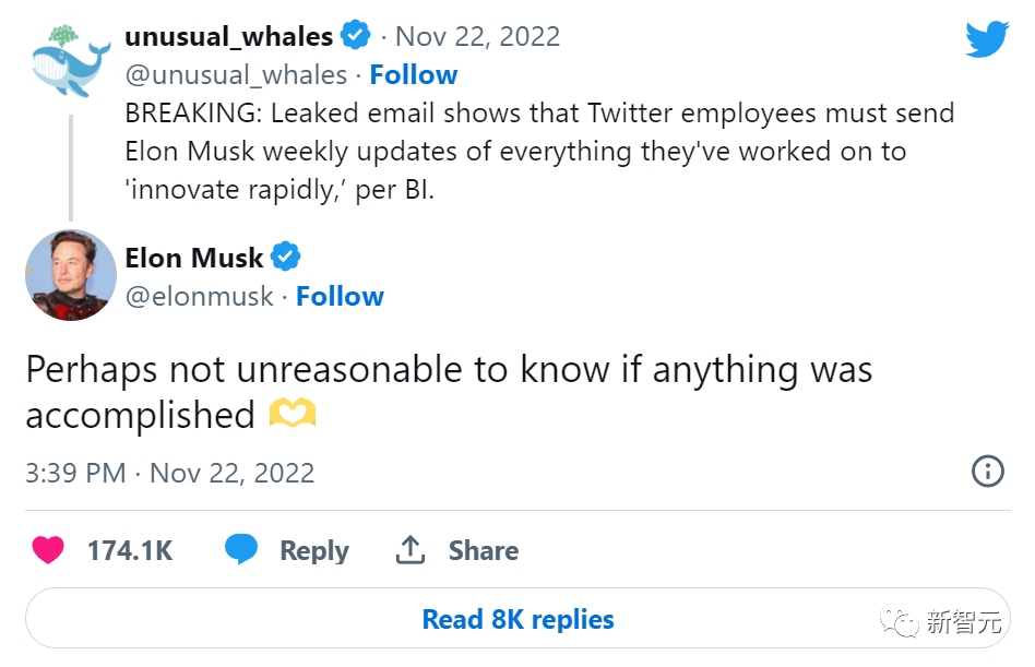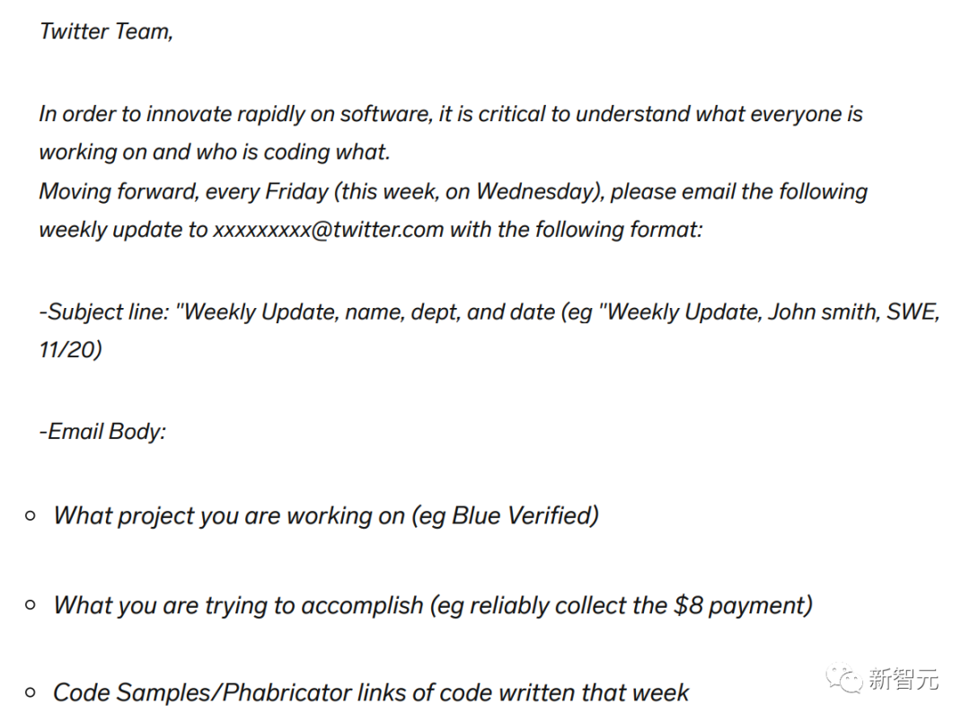 【导读】在马斯克的指示下,推特一纸邮件,以后员工需要写周报了,而且光吹水不行,还要附上写的代码。