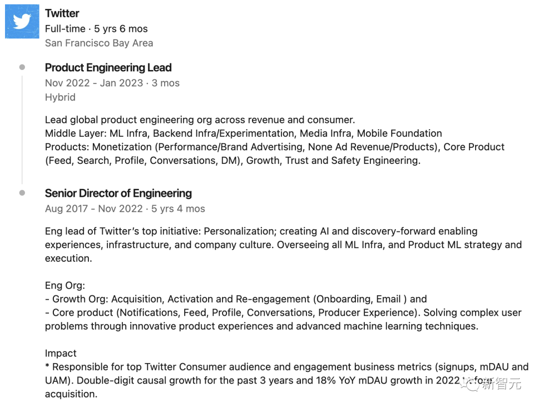 2017年8月,Rezaei加入推特,担任高级工程总监,并在2022年11月成为产品工程负责人。