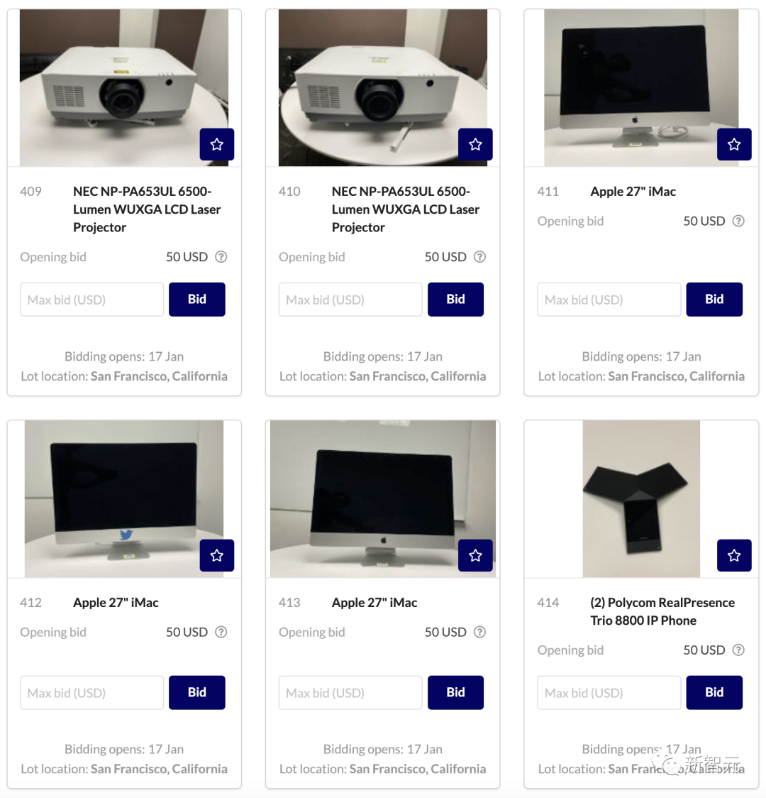比如,出售推特总部那些「无用」的人体工学椅、特色纪念品、各类厨房设备,以及iMac、工作站、激光投影仪,外加几十个显示器等等。(总感觉有哪里不对)