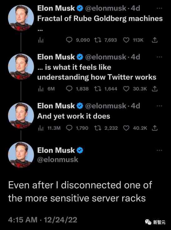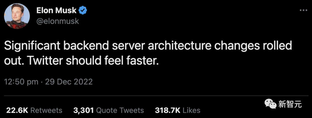 不过,到了12月底,马斯克依旧坚持认为,后端服务器架构应该进行「重大」整改,这样可以让Twitter「更快」。