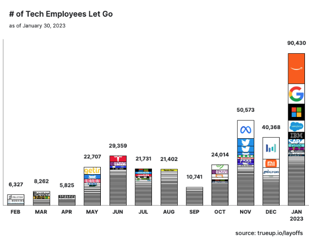 2023年开年,全球科技企业的裁员人数已经超过了9万人。