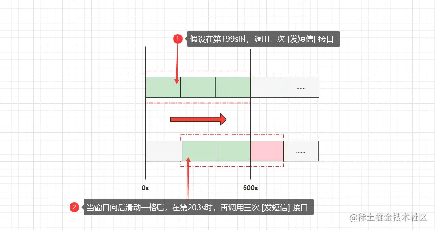 当然,上述这种做法在用户量较大的情况下,显然会对程序造成较大的性能损耗,假设有 100W 用户,那就需要维护 100W 个计数器,这会使得内存占用率直线飙升,同时还需要创建 100W个 定时器,来分别维护每个用户的调用计数器。