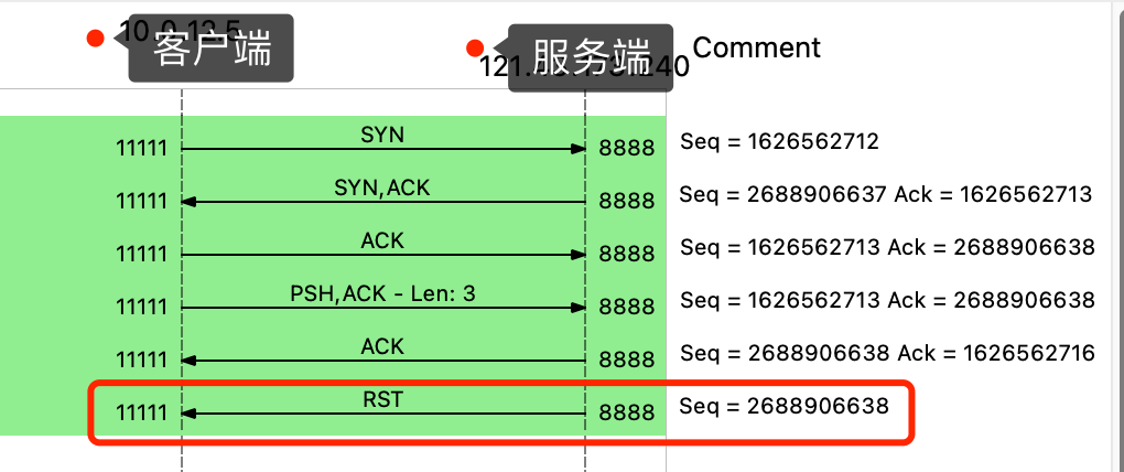最后一个 RST 报文就是 tcpkill 工具伪造的 RST 报文。