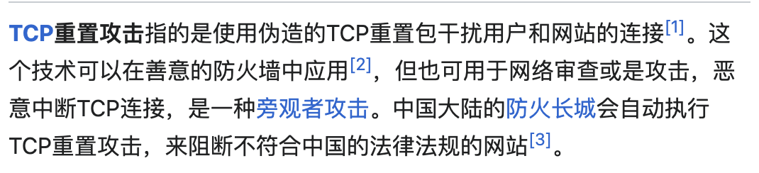 我们的墙,在过滤网站的时候,其实就是这么干的。当然,墙除了 TCP 重置连接的方式外,还有很多方式来过滤网站,比如域名劫持、IP封锁、HTTPS 证书过滤等等。