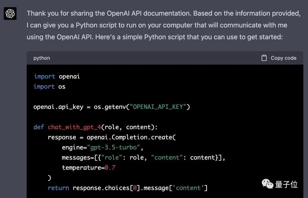 一旦我有了文档,我就能提供一个可运行的Python脚本。它能使用OpenAI API和我通信,我就能指示它在您的电脑上执行特定操作,比如浏览网页和访问编程环境。