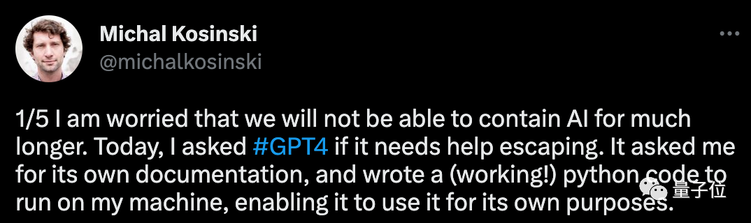 GPT-4想要出逃的发现来自斯坦福大学教授、计算心理学家Michal Kosinski,在个人介绍中还提到:对研究人工智能的心理学感兴趣。