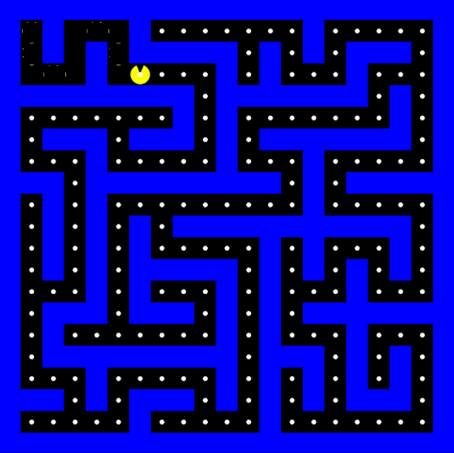 这个吃豆人 gif 就是这么生成的:CI 用算法生成迷宫,把迷宫变成方块,用算法找到出口,做成吃豆人的样子,然后生成 gif。